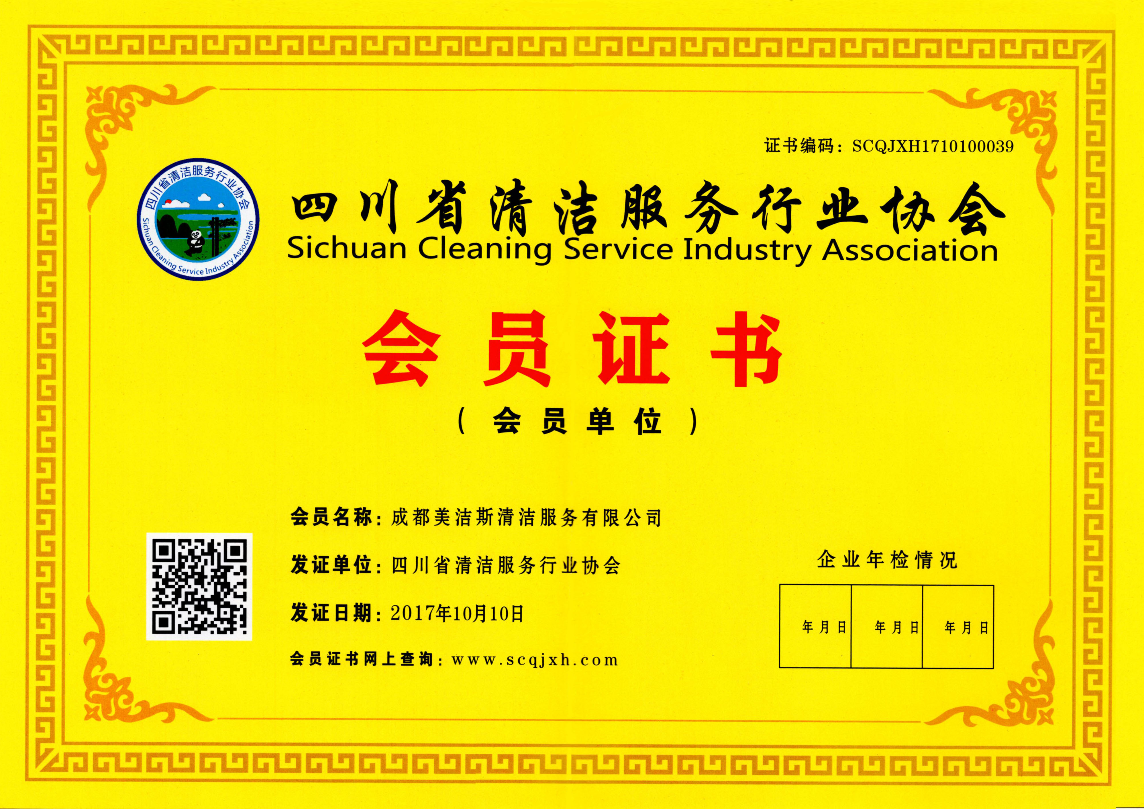 成都市家政服務(wù)行業(yè)協(xié)會(huì)會(huì)員資格證書